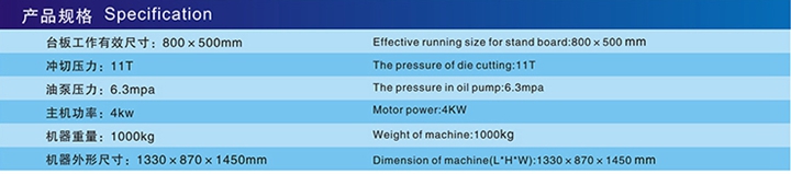 該機(jī)具有定位、微調(diào)、自動(dòng)脫料等功能,工作高Xiao準(zhǔn)確;自動(dòng)停機(jī),四立柱式穩(wěn)定結(jié)構(gòu),性能穩(wěn)定,操作安全。